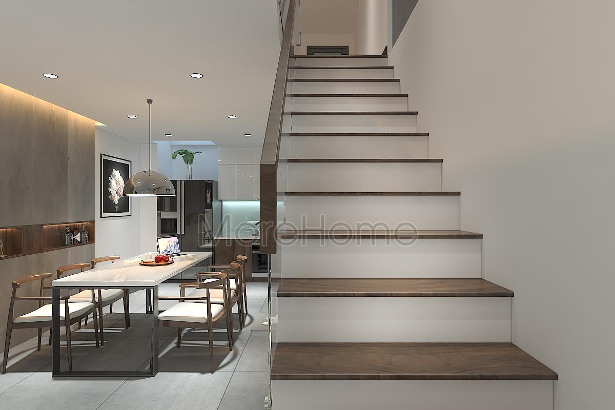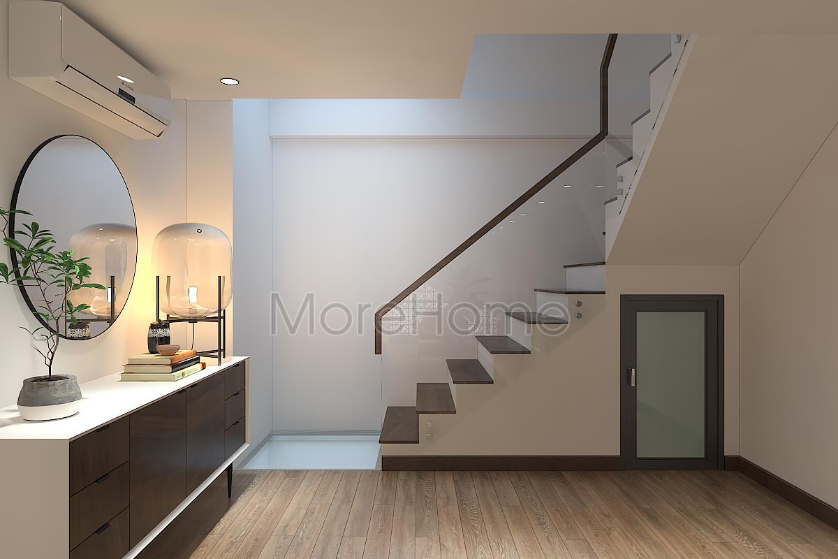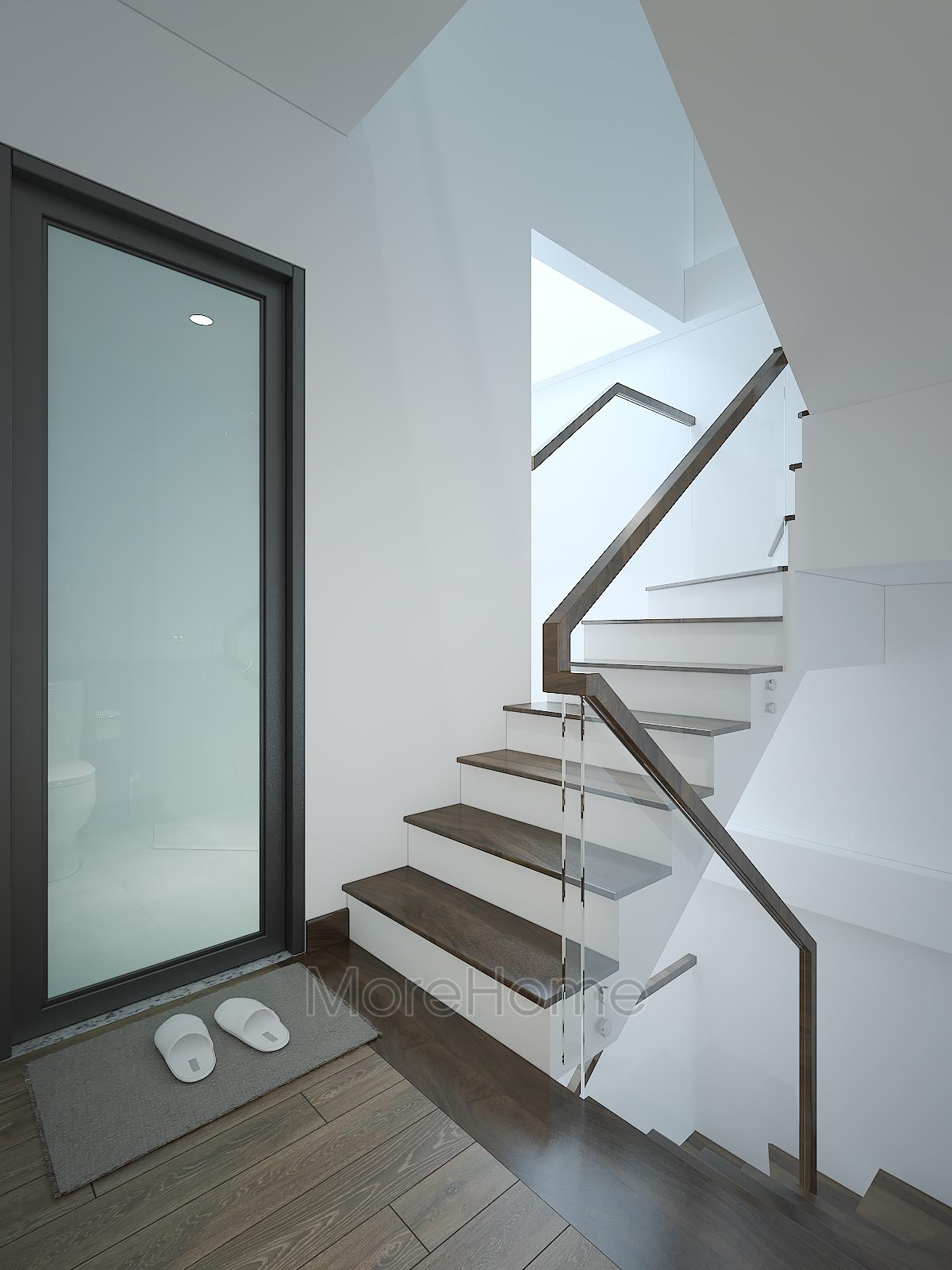 Morehome chuyên thiết kế và thi công trọn gói các loại cầu thang gỗ kinh đẹp cho penthouse, pentstudio, duplex, biệt thự, nhà phố, nhà liền lề. Khách hàng có nhu cầu thiết kế hay thi công trọn gói cầu thang gỗ kính. Vui lòng liên hệ: 0975438686.