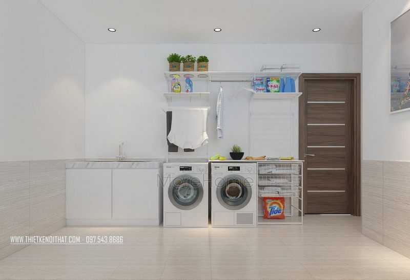 Ngắm nhìn mẫu cửa gỗ óc chó nhập khẩu sang trọng đặt tại phòng giặt biệt thự cao cấp.
