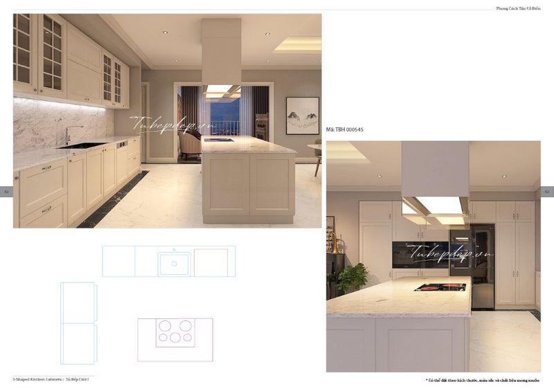 Mẫu tủ bếp màu trắng nhẹ nhàng, tinh tế sẽ làm cho không gian phòng bếp biệt thự trở nên hài hòa và sang trọng hơn.